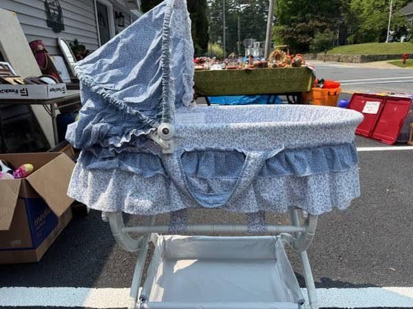 Beautiful bassinet, portable. Comes off stand to be carried. Good for travel. Cash Only.