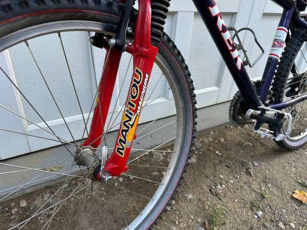 Vintage mountain bike in good shape! Hard tail with manitou fork. It’s been sitting in basement for years. Would need a good going over.