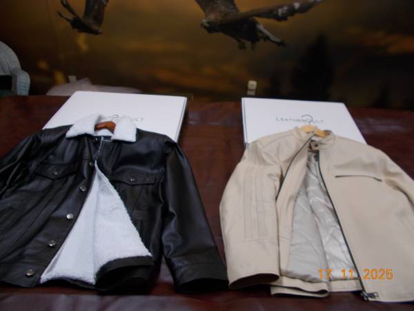 both are still in the box and never worn. i would like $150 for the black one ane $100 for the beige one. please note tnat these jackets are not cowhide but nice sheepskin. these would make a very nice Christmas Gift. . you can call me at show contact info
