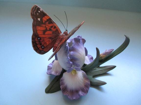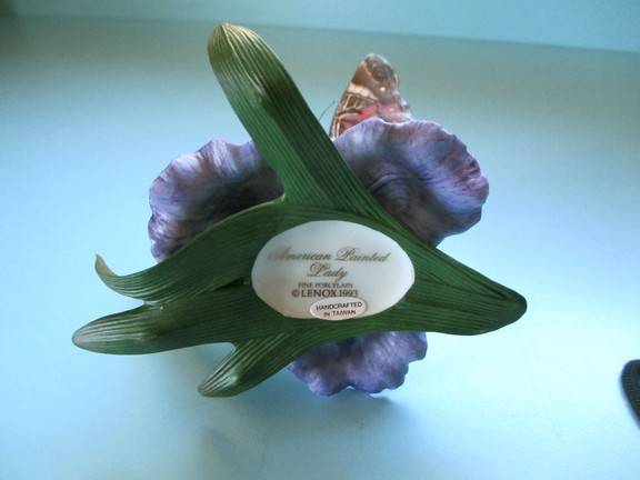 Vintage Lenox 1993 Fine Porcelain American Painted Lady Butterfly on Iris figurine. This hand painted figurine is part of the Lenox Butterflies collections.