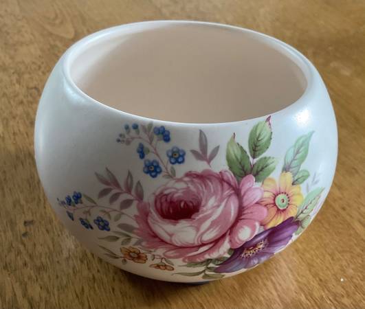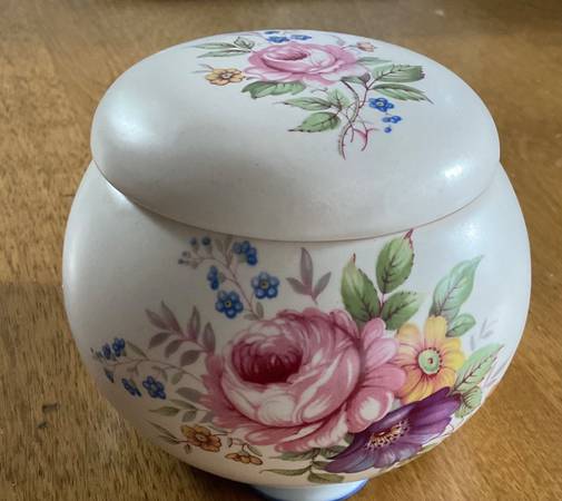 Vintage Axe Vale Devon Pottery pretty rose trinket pot. It’s about 3” high. Great shape.