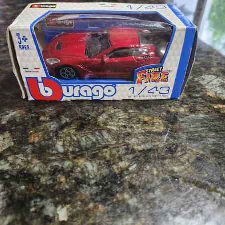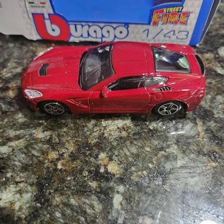 Bburago Chevrolet Corvette Stingray 2004 red w black interior die-cast 1:43. Street fire series. In original box. Designed in Italy made in China. M Glens Falls