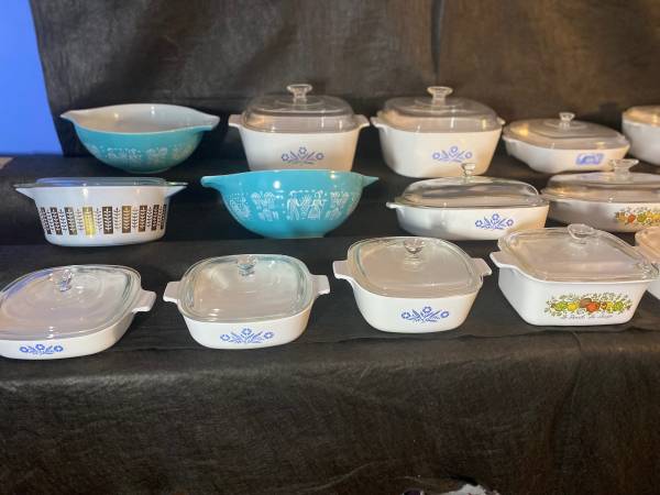 For Sale; Large collection of vintage Pyrex and CorningWare bowls, dishes and skillets from 2 estates. Way too many to list on here. All but a few are in excellent condition with no chips, scratches or wear! Colors are all vibrant with zero fading and patterns have no wear. All are clean, organized and ready for viewing. Pics posted are just a sampling of total collection. Cross posted so availability of some items subject to change. Over 36 total pieces including lids. Looking to sell as a complete collection before posting individually on other sites. Please email me with any questions or to schedule a time to meet. Thanks for looking
