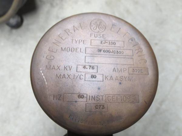 3 Phase Fuses GE type EJ-1dd Max KV 4.76 Amp 300E Fiberglass Made in Pittsfield Ma.