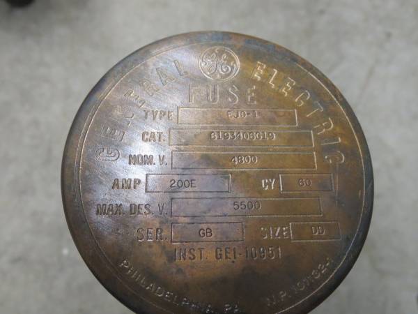 3 Phase Fuses GE type EJO-1 Voltage 4800 AC MaxV 5500 Amp 200E Made In Pitttsburg PA.