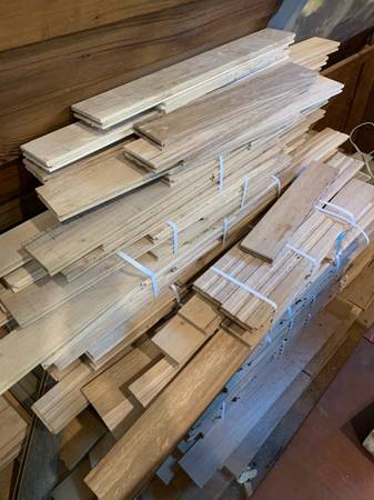 Purchased 756 SF of white oak flooring at auction January 2024. 3-1/4 x 3/4 RF. It has been in weatherproof interior storage. Mostly loose (unbundled). Buyer must move and transport.