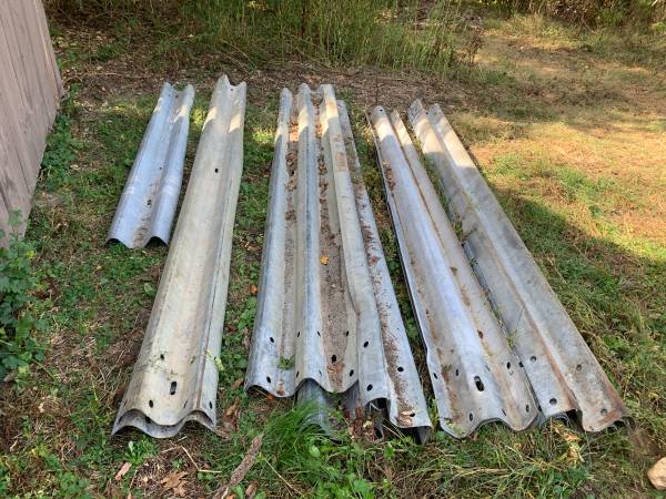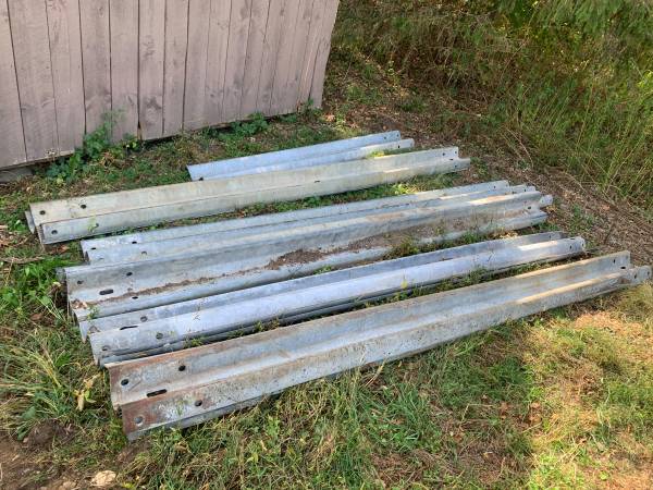 11 1/2 pieces of guard rail. Perfect for preventing erosion, creating raised garden beds, or installing guard rails. $80 each or $700 for the lot. The first five photos are the guard rails for sale...