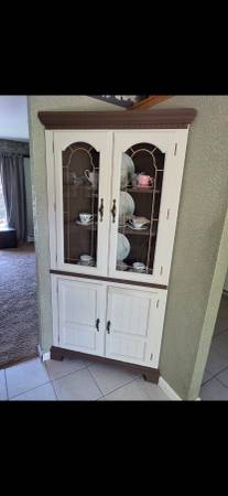 Dining set, table and 4 chairs + corner hutch and side buffet table $280 for all OBO