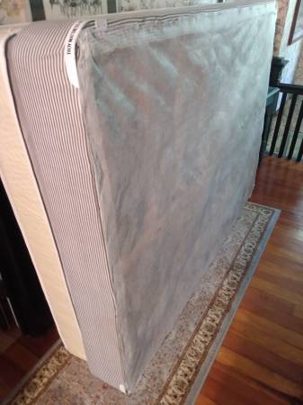54 X 75. Full size mattress and box springs. Very good and clean condition. Troy mattress box springs, very well made. Mattress is firm, from a guest bedroom, very little used. From a smoke free and...