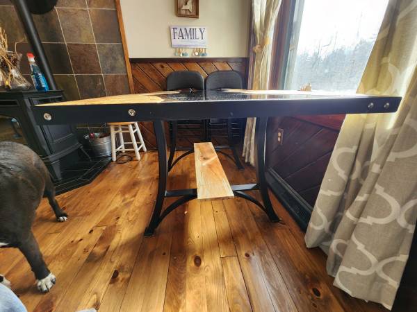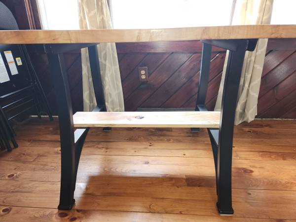 glass table top with maple. metal legs. 32" wide. 60" long. 30" high.