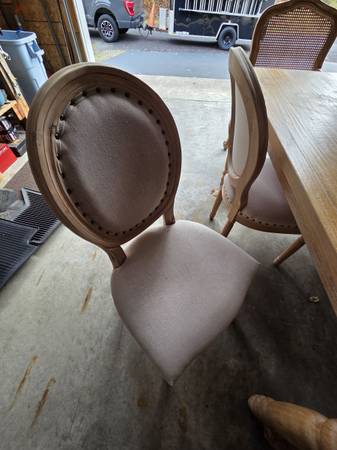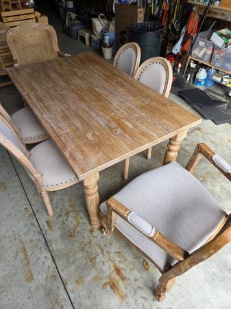 Nearly New dining room set. 7 piece. Table, two end chairs and four center chairs. All in great condition.