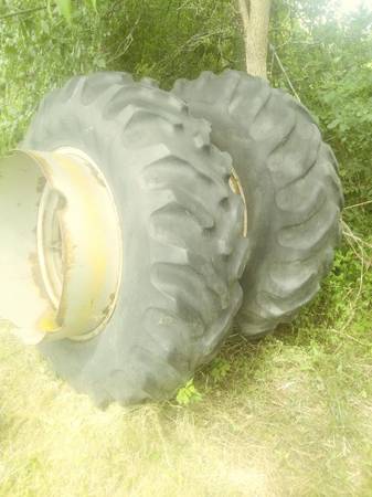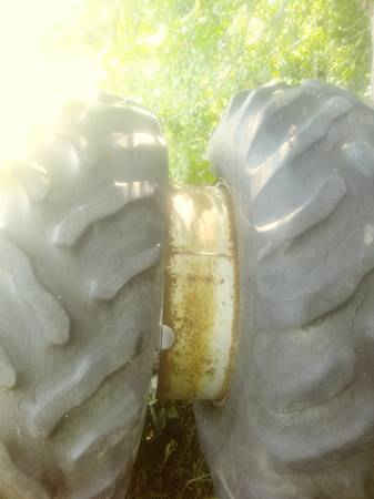 Please note: I am in Morrisonville, NY which is just South of Plattsburgh. I am selling a set of used clamp on type dual wheels. Rims are in good shape, tires are weather checked but hold air. Tire size is 16.9- 30. Binder clamps are included...I think there are 6 with the tires and I may have one or two more in my garage. The eye hooks that the binders clamp to are on my tractor so they will not be included, but they are readily available at equipment dealers or online. I used them on my IH 574 tractor, but they will fit other tractors with that size rim. They really add a lot of floatation when conditions are wet. I lowered the price to $300 OBO because I would like to see them sell before the snow and ice come and freeze them in place for the winter. Please call 518 six four three 2035. Thanks.