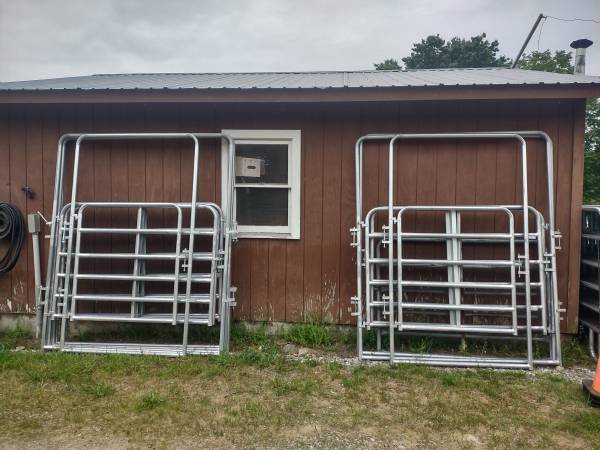 Our panels are 19/20 steel gauge. Panel dimensions are 12' long and 5' high. Walkthrough dimensions are 8' high and 4' wide or 8" high and 6' wide. Pin together type (easier to put together then the chain together ones) You can use them on uneven ground. One person can easily carry one panel. Great for temporary fencing and training. They last a lot longer then the painted ones. You can buy as many or as few as you want. Call show contact info