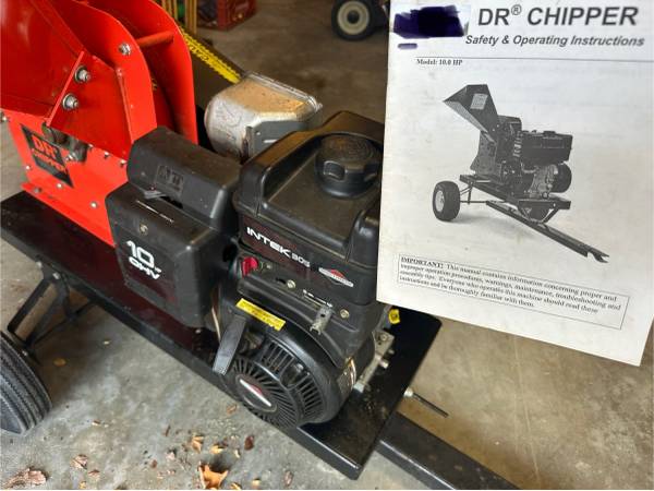10 HP DR chipper with Briggs n Stratton engine. Runs and operates great. Just don’t need it anymore. New wheels and tires just installed.