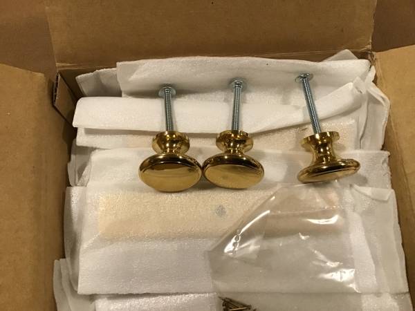 (11) Polished brass cabinet/drawer knobs.