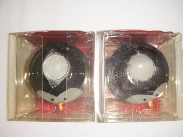 This item is an adorable Hallmark penguin candle holder with a tea candle. They are new in the original box. Price is $5 for one or $8 for both.