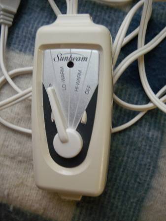 This is a Sunbeam automatic heated throw size 50" x 65". It comes with a control that has low warm and high warm settings with 2 flanking off settings. Throw has a generous 120" power cord;...