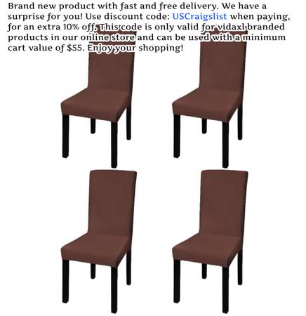 This set of four stretchable chair covers offers a stylish and protective solution for dining room or kitchen chairs. Made from a mix of 90% polyester and 10% elastane, these covers stretch to fit a range of chair shapes, keeping your furniture safe from spills and wear. With their smooth feel and brown color, they blend right into modern decor, giving your seating a quick facelift.