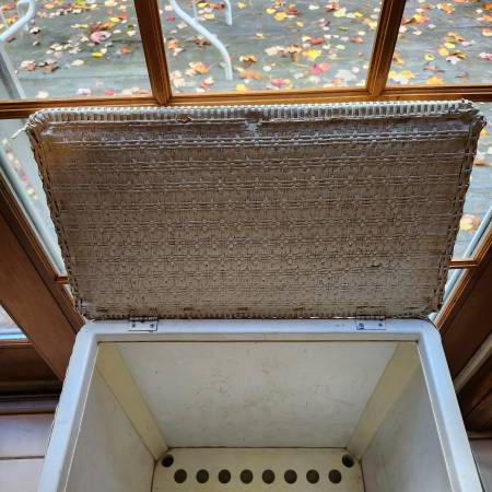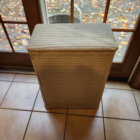 No longer used wicker hamper for clothes or laundry white. M Glens Falls