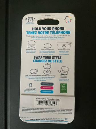It is metal and did not work with my wireless charger. I tried the pop part when I received it and then replaced it immediately. This is unused and still has the plastic protector on.