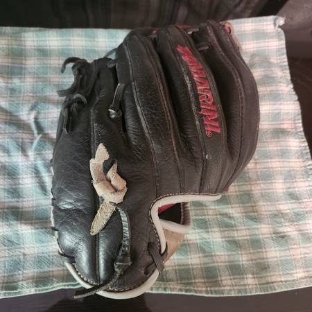 No longer used, Demarini Insane softball or baseball leather glove. Has a great pocket already developed for softball. the glove is black with tan pocket and red accents I will keep the posting up...