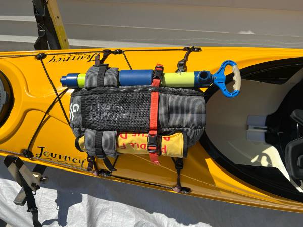 The Journey was replaced by the Denali which was replaced by the current Sitka XT. The dimensions and features are similar, made for the larger paddler with the largest cockpit available from Eddyline. The main difference is no 3rd easy access hatch. I prefer the Journey with deck pod, since the hatch behind is tough to reach and the one in front robs space for your legs and knees. For easy removal the deck pod attaches to clips that stay attached to the kayak, it includes spots for a paddle float and bilge pump, and has a pocket with space for a water bladder and more. I love the skeg, an absolute must for keeping straight. When I last paddled the kayak in 2023 I was 5’10” , 220lbs and found it fit me well.