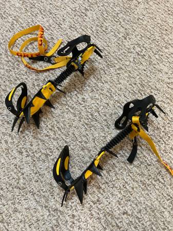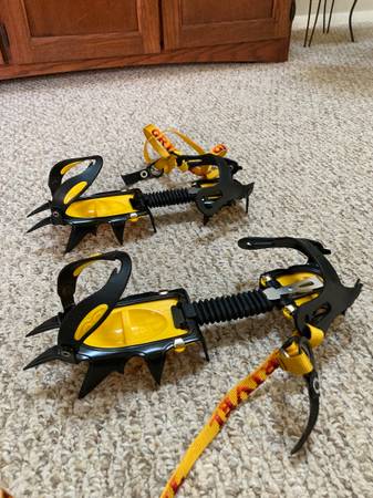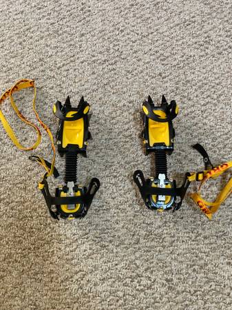 New-Classic EVO style. Designed for any type of winter hiking boots. Basically like new Did a couple Adirondack slide climbs with them and that’s about it.