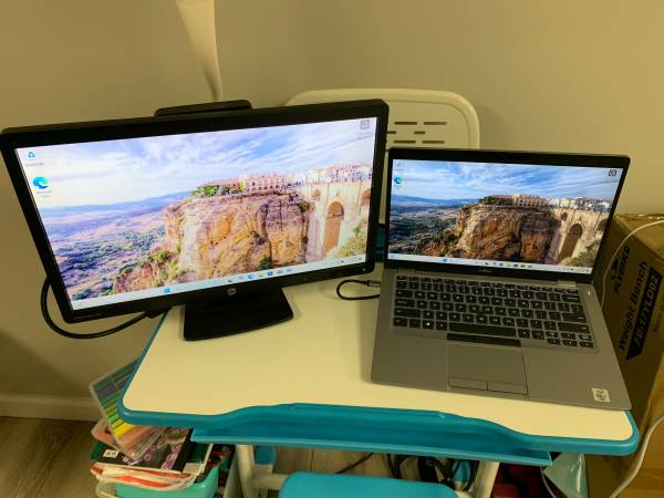 Surplus from a NY State Government Agency. Bundled here with two monitors (20" or larger - picture only shows one), but you will be setup for two), a docking station so you can connect all this to, and a keyboard / mouse set. Power adapter as well as all the cables required to make this work are also included.
