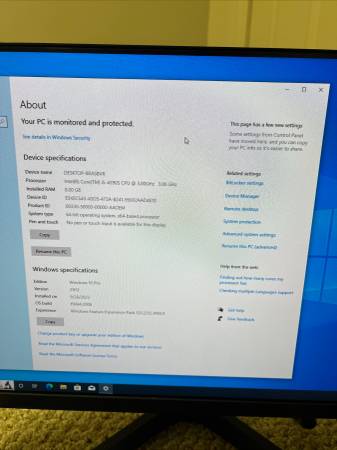 Desktop comes from Best Buy, reset by their technicians (not by us). We paired it with a monitor (19" standard - we can offer a larger one but would cost more) as well as wireless keyboard / mouse and a speaker. Exact make / model for the accessories will change depending upon what we have available at the time of sale. Details: