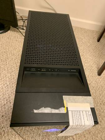 Surplus from Best Buy - we did not do anything with it, their technicians reset the machine. The paper you see stuck over the front of it is the record of work from Best Buy, showing what they did, who did it... what the results were, etc. We leave it on so you can see what has been done to it.