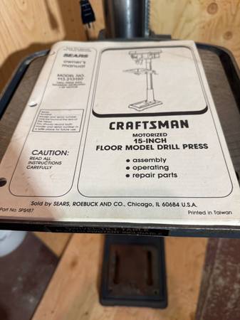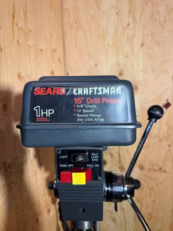 Drill press floor model. 15”, 1hp, 5/8” chuck.
