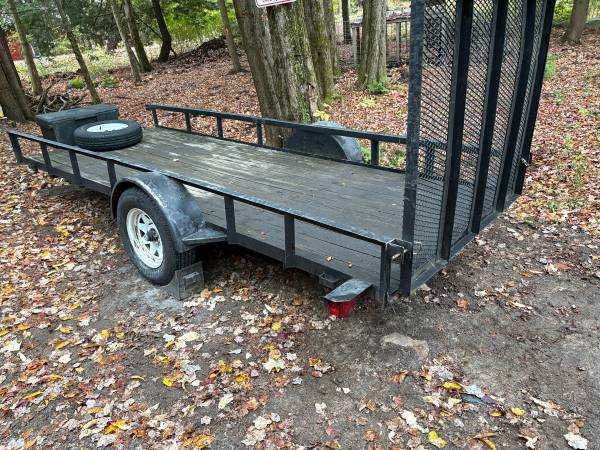 I have for sale a 2006 5 by 14 utility trailer . All solid steel with no rust . In good shape . Deck is pretty good . Trailer comes with lockable box and new spare. Lights work . Does have registration. Trailer has open front design but anything can be added to close off. Solid steel solid trailer tows nice . 1500 . Located in Galway ny