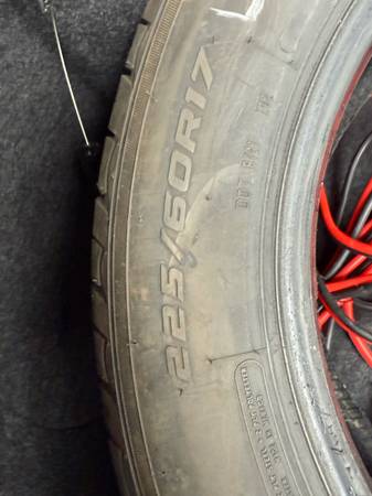 Them around if you don’t want the white wall side out.225 60/17’s.