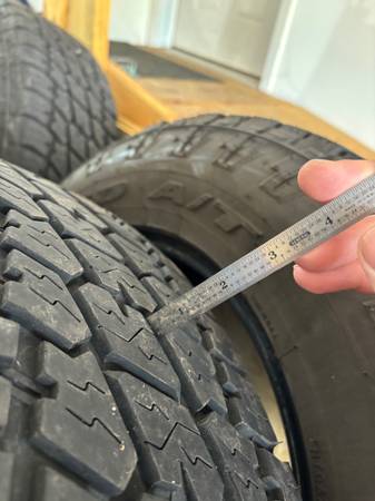 Set of 4 used tires, Nitto Terra Grappler 2 265-65 18 1/4" of tread left Removed to go to a larger size.